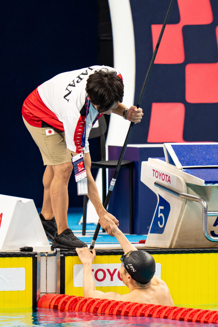 男子400m自由形S11(全盲)で富田宇宙(EY Japan)が4:37.31を記録、パリ大会に迫る好タイムで銀メダルを獲得した。レース後のミックスゾーンで「パリ後、コーチと一緒に取り組みたかった挑戦が今回はできなかった」(コーチが確保できなかった)と率直に振り返った。その一方で、「自らがこれまで培ってきた経験をフルに活用し、勝負したことが銀メダルにつながった。一番やりたかった方法ではなかったが、今の自分にできる最大限を発揮できた」と振り返った。