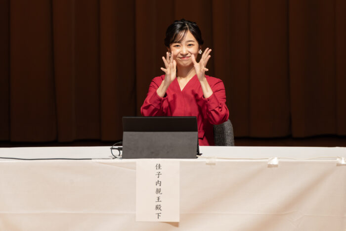 手話でお言葉を述べられる佳子内親王殿下。「皆様がこれまでの努力の成果を存分に発揮できるよう応援しております」と激励した。 写真・川村翼