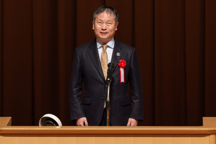 河合純一スポーツ庁長官。「自国開催は貴重な機会。自分を信じ、仲間を信じ、応援してくれる多くの皆さんを信じて、笑顔で最高のパフォーマンスを発揮していただきたい」とエールを送った。写真・川村翼