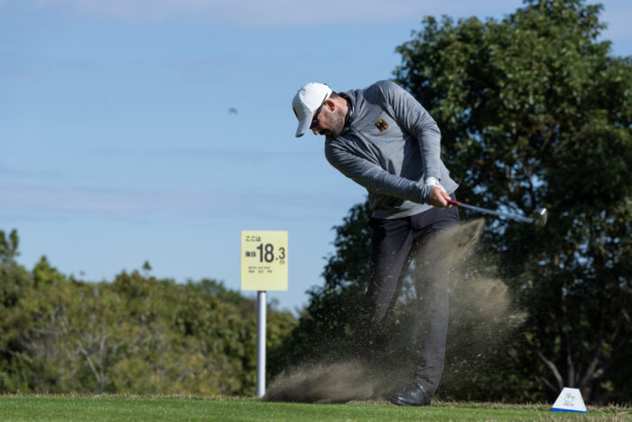 いよいよ、最終日(11月21日)男女混合団体戦が行われる。日本からは前島・辻ペア、渕・中島ペアの2組が出場する。団体戦はフォアサム形式で行われる。フォアサムは2人1組のペアが、一つのボールを交互に打ち、対戦相手のペアと競う競技だ。フォアサムの難しさは、プレーヤーの技術だけでなく、高いレベルのチームワークと高度な戦略が要求されることだ。日本の高い団結力で難関コースの洗礼に挑む。