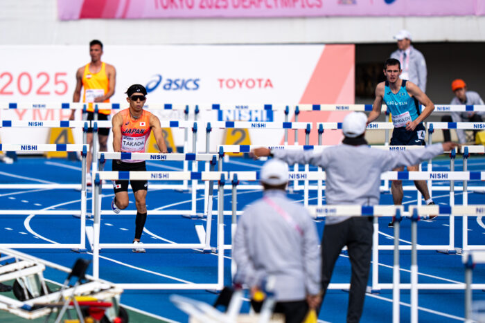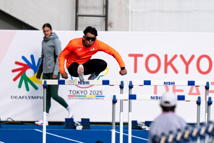 19日、駒沢オリンピック公園 陸上競技場で行われた110mハードル予選に出場した高田裕士(トレンドマイクロ)は、デフリンピック5大会連続出場で活躍が期待されたが、フライングにより失格となった。