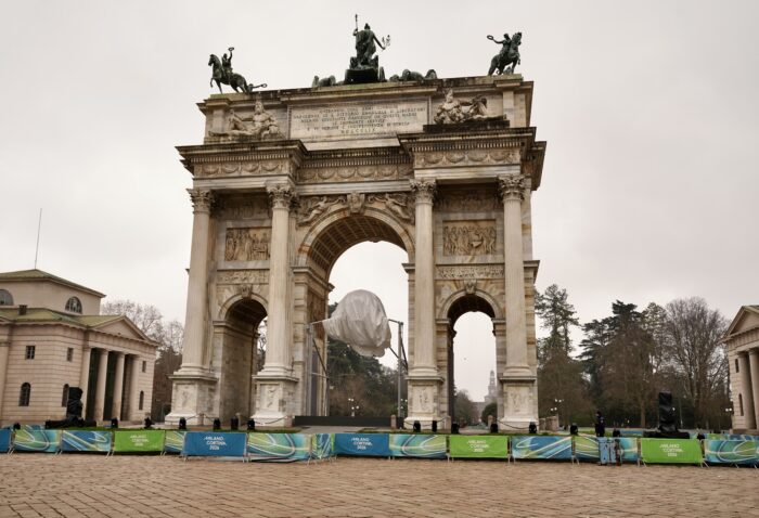 目的地は「Arco della Pace(アルコ・デッラ・パーチェ)——平和の門」。4日後の開会式に向けて、聖火を迎える準備がすでに整えられていた。