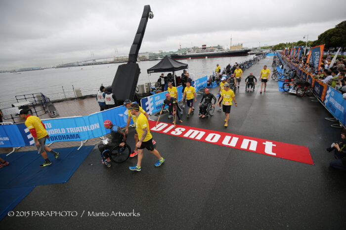 昨年の横浜大会ではリオパラリンピックへの正式なクラス分けが行われた。昨年から今年までに、リオパラリンピックでの出場クラスが男子PT1、2、4と女子PT2、4、5と決まった。また、PT2〜4についてはハンドラー禁止とルール改正が行われた。今年はいよいよ、リオパラリンピック1年前となり、出場したパラトライアスリート全員がリオを意識し、集中したレースを楽しんだ。