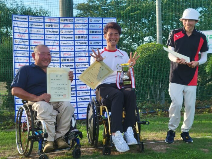 囲み取材で(左から)ウィルチェアラグビー本代表選手・池崎大輔、池透暢