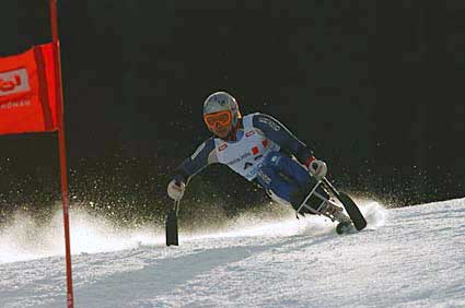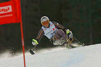 なお、ダウンヒルのトレーニング時に負傷し、ここまで2レースを欠場してきた森井大輝選手(LW11)は、ケガの回復が思わしくなく、今日のジャイアントスラロームへの出場も見合わせました。最終種目のスラロームへの出場も微妙な状況です。直前のワールドカップでも優勝するなど絶好調だっただけに、本人にとってもチームにとっても非常に残念な事態となってしまいました。3月にはまたイタリアへのワールドカップ遠征も控えているため、ここはじっくりと傷を癒やし、今回のメダリストたちを慌てさせる活躍をまた見せてほしいものです。(写真 長谷川選手の滑り)