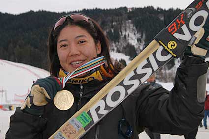 「1本目は、急斜面の滑りが危なっかしいと思ったんですけれど、結果オーライ。緩斜面は、けっこう良いスピードで滑れました。2本目は、ちょっとリズムがとりづらくて、あまり好きなセットじゃなかったのですが、でも自分の滑りをすることだけを心がけました。斜面変化のところでちょっとスキーが浮いて、危ない場面があったんですが、気持ちを引かないようにして、身体を下に落として、とにかくスキーの上に身体を置くことを心がけてなんとか乗り切りました。(2個目の金メダルを獲って)やっぱりすごくうれしい。今日は朝から『絶対に行くぞ』という気持ちになっていたので、獲れて良かったです。スラロームでも、できれば良い色のメダルをもうひとつ欲しいですね」