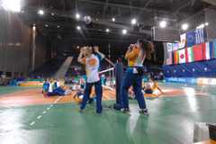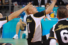 会場では前の試合が終わっていて、会場運営のボランティア達がシッティングバレーに興じていた。自分にカメラを渡してきて「俺達がプレーしてるとこを撮ってくれ」と言う。