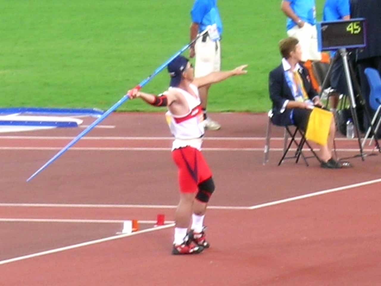 尾崎選手は、やりを投げる際、方向を定めるために左手を添えるスタイルで練習をして前回、シドニー大会に臨んだものの、競技直前に、「シングル ハンド オンリー(片手のみ使うように)」といわれて戸惑い、飛距離を思うように伸ばせず銅メダルに終わった経緯がある。