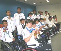 日本パラリンピック委員会は28日午前9時30分(日本時間午後3時30分)、日本選手団の金メダリストによる合同記者会見を行い、金メダルを獲得した選手が出席して、アテネパラリンピック大会を振り返った。記者会見のコメントを紹介する。・陸上・高田稔浩選手「真面目が一番大切と確信した」・陸上・安岡チョーク選手「日本人のためにメダル獲れて嬉しい」・陸上の土田和歌子選手「成果出せた。新たな課題に力の限りチャレンジを」・畑中和選手「3度目の正直、陸上の神が降りてきてくれた」・「気持ちよく走れた」とマラソンの高橋勇市選手・斎田悟司選手「最高峰の大会、感動や興奮を伝えたい」・テニス・国枝慎吾選手「さらに練習を」・「三連覇達成、次へつなげたい」と柔道・藤本聰選手・「4人で励ましあって取ったかけがえのないメダル」と水泳・藤田多佳子選手・「悔しい思いと喜びを同じ日に経験」と水泳・梶原紀子選手・水泳の奈良恵里加選手「シドニーの悔しさが、今回のメダルに」 ・成田真由美選手「平泳ぎ世界新が自分の中でも特別」・ 「水泳チーム過去最高メダル23個、まとまりのあるチームで乗り切った結果」と河合選手・「約束の金17個取りました。選手強化費の増加をぜひ」と松本旗手・「至上最強の選手団を誇りに思う」と永尾主将・金メダル17個と過去最高数。「選手たちはよくやった」と岩坪団長