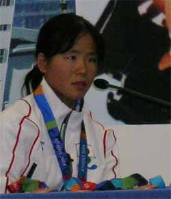 奈良恵里加選手 「水泳の奈良です。 今回、シドニーと2大会連続出場で、個人種目は、100メートルと50メートル自由形が銅メダルでした。シドニーの時は残念ながら体調を崩してしまって、悔しい思いをして途中帰国をしたのですが、今回、その結果銅メダルをとることができ、すごくうれしく思います。 金メダルは、フリーリレー。この4人のメンバーが心を一つにして、獲得できたメダルということが、一番思い出になりました。ありがとうございました」