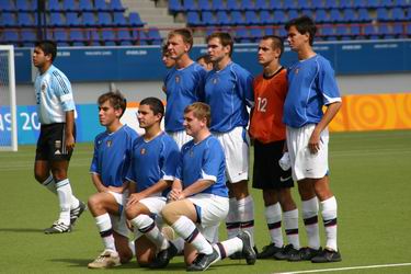 キックオフの笛が鳴ってからわずか6分で勝負は決まった。前半5分にロシア期待のホープ、18才のTCHESMINE選手の折り返したボールを、若き司令塔の5番GLUSHONOK選手がきっちりゴールに流し込んで先制する。そのわずか1分後、ロシアの15番、エースストライカーの強烈なシュートが、相手ディフェンダーに当たりながらもそのままゴールネットを揺らす。チームの最重要プレイヤー、10番Mario選手を出場停止で欠くアルゼンチンにとって、この序盤での2点差は相当厳しい。