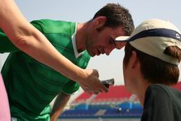 <アイルランド9番O HARA Alan選手> アイルランドはイランに7失点を喫して予選3連敗。それでも最後までAlan選手はチームのストライカーとしてゴールを狙い続けた。その姿は痛々しくもあり、勇敢だった。7位、8位決定戦でも変わらぬ闘争心をみせてくれることだろう。試合後に、悔しさを押し殺して、笑顔でインタビューに答えてくれた。とにかく負けてしまって悔しいと一言。チームとして守りきれずに失点を重ねてしまったことが全てだったと。次の試合こそはもっともっと動いて、少しでも今日の試合より良いパフォーマンスをチームとして見せたいと意気込みを語ってくれました。最後にあなたはプロのサッカー選手ですかとの問いに、母国では牛乳の配達をしているそうだ。
