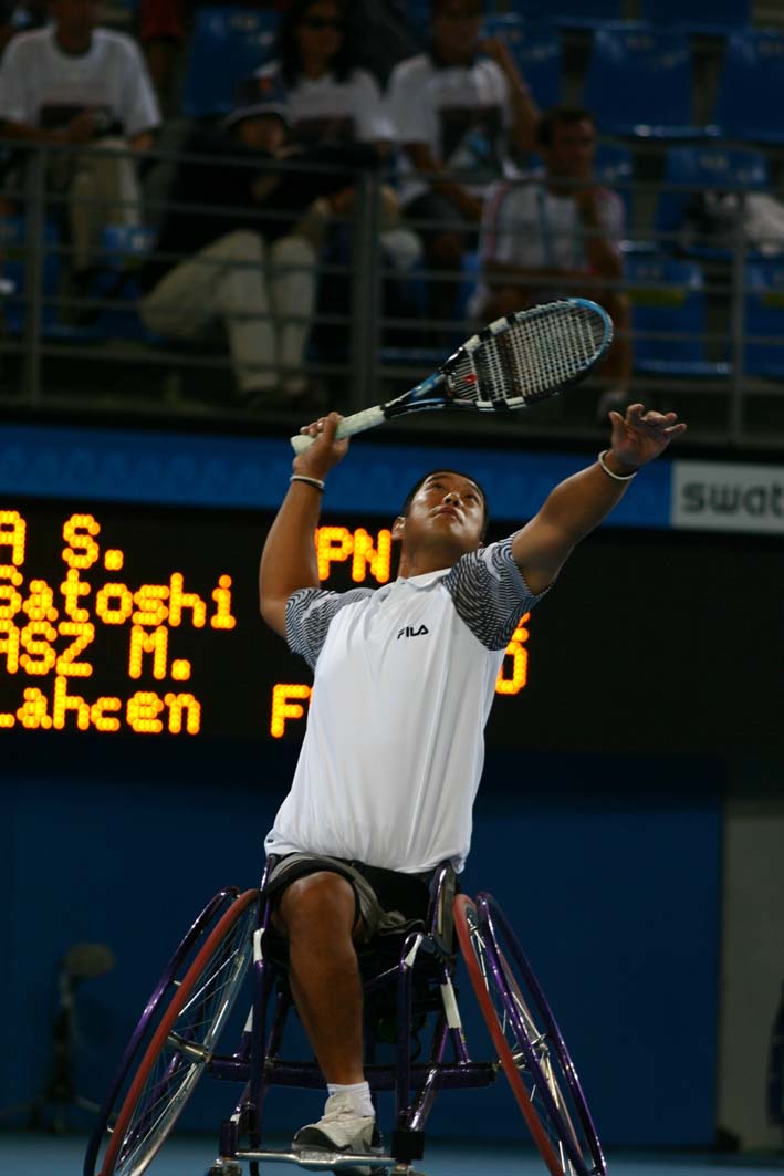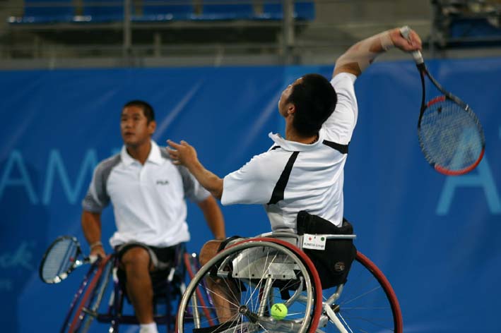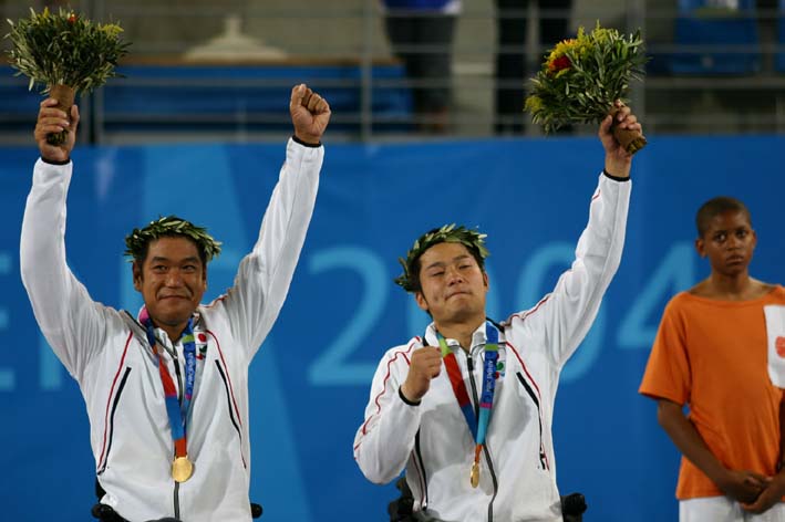 9月25日、車いすテニス男子ダブルス決勝がオリンピック・テニスセンターで行われ、決勝に進出した斎田悟司/国枝慎吾組は、フランスペアを敗り、優勝を果たした。車いすテニスが92年バルセロナ大会で正式種目になってから、日本は初のメダルを獲得した。 前日の準決勝と比べて、斎田、国枝両選手の動きはスムーズだった。斎田のストロークが冴える。国枝は、積極的にネットに詰めて相手の甘いボールをしっかり決めていった。