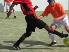 ブラインドサッカー。アイマスクで完全に目を隠し、音の鳴るボールを使うこと以外はフットサルのルールとほとんど変わらない。W杯前の文化交流を機に韓国から伝わってきたばかりの競技だ。アテネでは、日本チームは出場しないが、正式競技として初お目見えする。