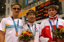 【金】畑中和選手▽陸上マラソン 畑中和選手(T54)が1時間49分26秒で金メダル。 【金】高田稔浩選手▽陸上マラソン 高田稔浩選手(T52)が2時間00分02秒で金メダル 。 【金】高橋勇市選手▽陸上マラソン 高橋勇市選手(B11)が2時間44分24秒で金メダル。 【金】 河合純一選手▽水泳50m自由形 河合純一選手(S11)が26秒64で金メダル。 【金】 成田真由美選手▽水泳150m個人メドレー 成田真由美選手(SM4 )が2分45秒20の世界記録、大会記録で金メダル。 |